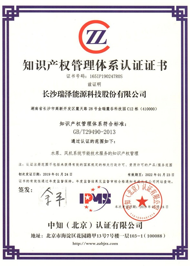 近期,長(zhǎng)沙瑞澤能源科技股份有限公司順利通過知識(shí)產(chǎn)權(quán)管理體系認(rèn)證,并獲得了中知(北京)認(rèn)證有限公司提供的知識(shí)產(chǎn)權(quán)管理體系認(rèn)證證書。