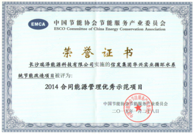 近日,在中國節(jié)能協(xié)會節(jié)能服務產業(yè)委員會(EMCA)展開了2014年度節(jié)能服務產業(yè)評優(yōu)活動中,我公司實施改造的信發(fā)集團循環(huán)水節(jié)系統(tǒng)節(jié)能改造項目年節(jié)電量高,社會及環(huán)境效益顯著,被評為合同能源管理優(yōu)秀示范項目,這不僅使我公司得到良好的宣傳,更是對我公司循環(huán)水系統(tǒng)節(jié)能改造技術實力的肯定。